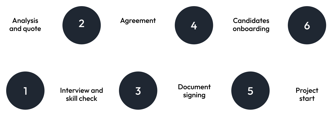 • Don’t spend months hunting for the right candidates – with our innovative team extension approach, you’ll have qualified professionals ready to work immediately.